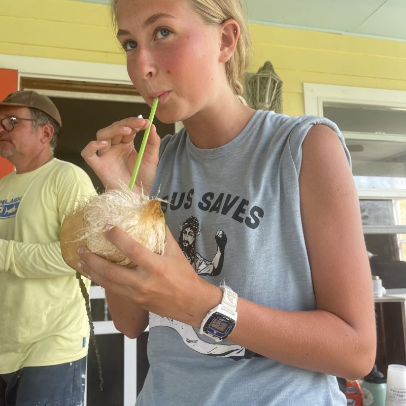 Next, we headed to Driftwood Farm to enjoy quality time with amazing people. When we arrived we all set out on our own tasks to help out the family who owns the farm. I (Faith) got to collect eggs from the chickens and fill up their water buckets. I also got to cut fresh lettuce from the farm that we got to eat that night! Being able to experience new things from the local Bahamians is such a blessing and an amazing experience!