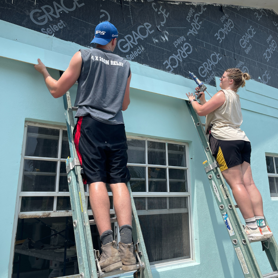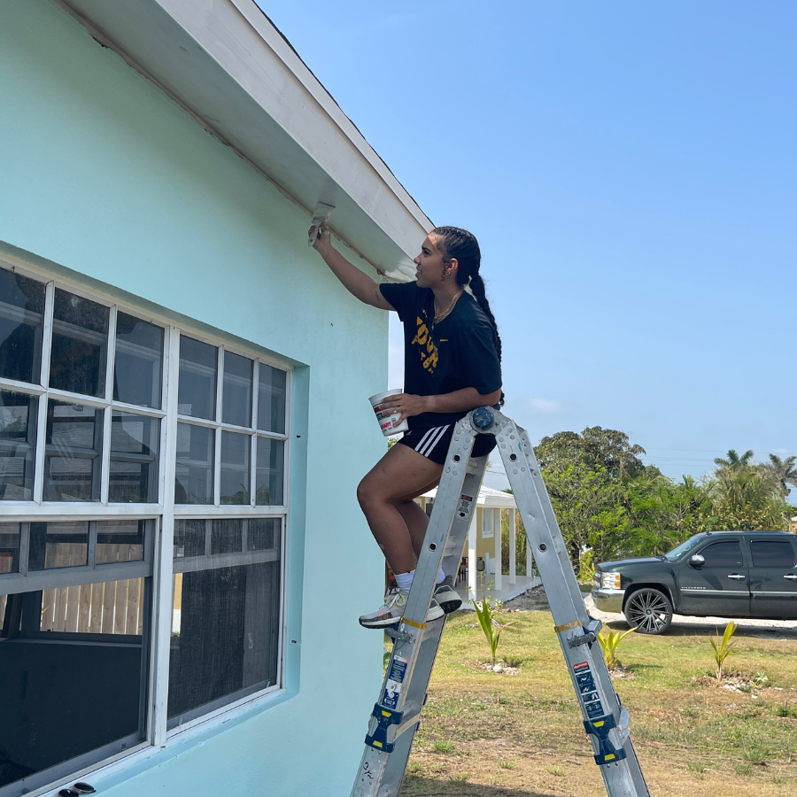 As a group, we were able to conquer MANY fears today. Hallee strongly overcame her fear of heights by getting on a ladder to help complete the hardie board. Along with that, Sophia was able to fight off her fear of wasps while painting the fascia, and only ran inside one time… new record. The girls have definitely worked on their fear of bugs, but still have room to grow… based on the screams we heard last night HAHA! It’s easy to say we’ve all grown a lot on this trip and it’s hard to believe that we have only been in Abaco for three full days.