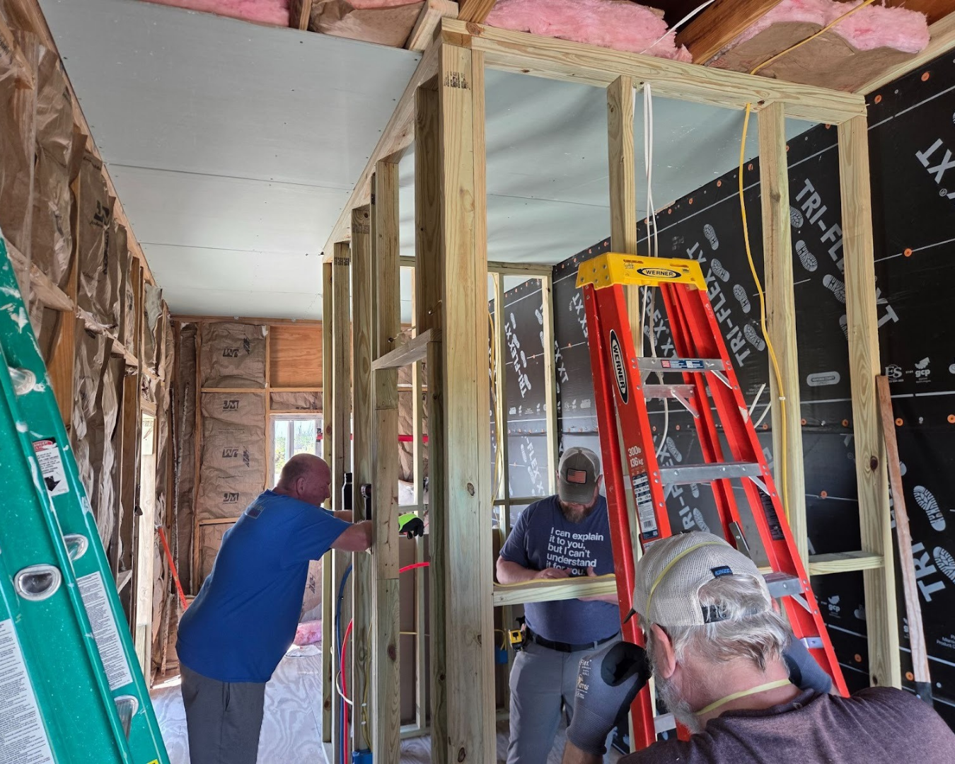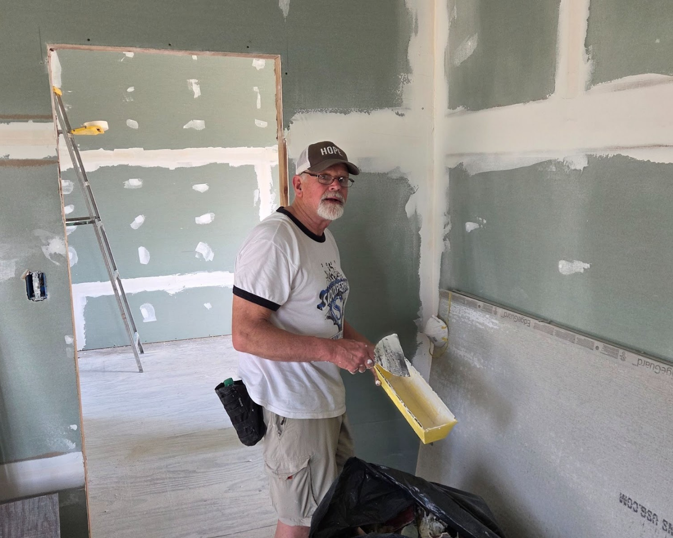 Once again, it was down the white road to our destination of God’s work site that he and Many Hands assigned to us. The guys on our trip took the tools to work on a house that needed insulation, drywall, mudding, and taping.