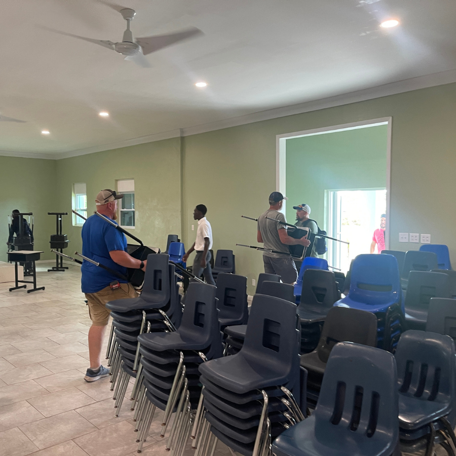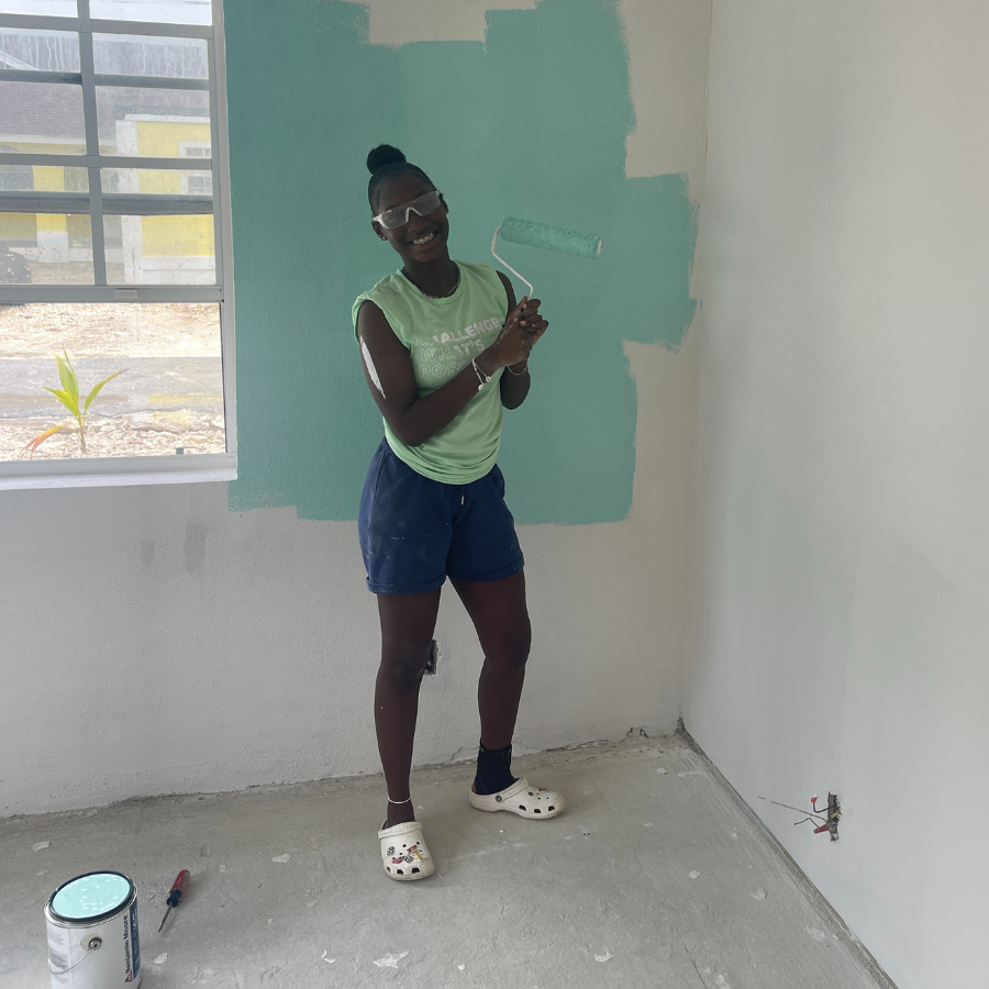 We then loaded up into the vans and headed to the Saunders house in Murphy Town. The Saunders family consists of Ms. Nicole and Mr. Larry and their two daughters, Larranique and Larriell. Larriell is in Grade 11 and has been hanging out with us at Camp Abaco and getting experience working alongside Laura. Today was HOT and the sun was shining but we were all ready to get to work. Ms. Nicole told us about their experience being in the home during Hurricane Dorian. How the roof was ripped off and they sat outside during the storm and she broke her arm and the aftermath of all the injured. It was intense listening to her speak and imagining the terror she must have felt. At one point during the storm she had been separated from the rest of her family and that alone….. We just couldn’t imagine how she must have felt. Judd then prayed for her and all of us and we got to work!