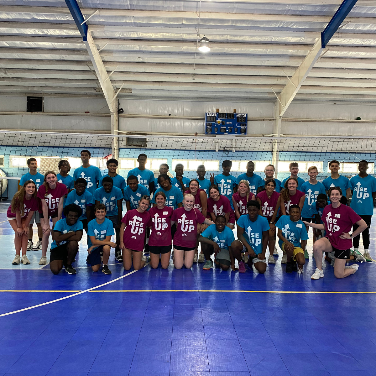 We hopped in the van, running late gotta get to “Rise Up” volleyball camp.