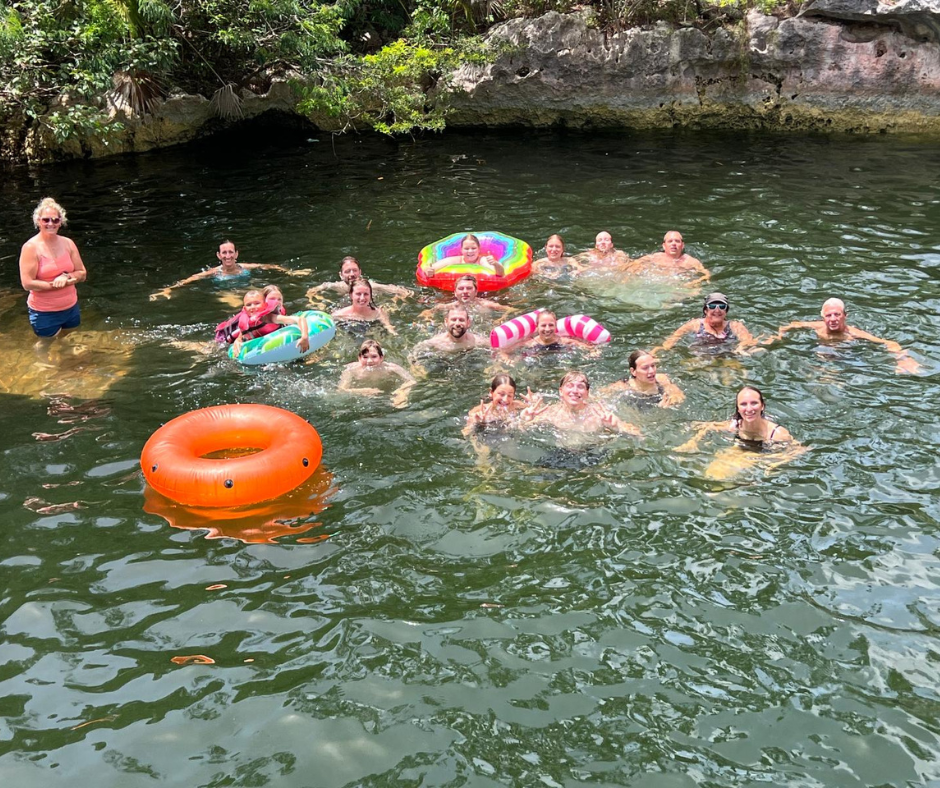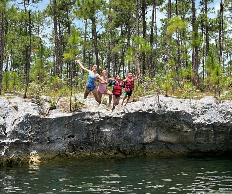 Today was our team’s “Culture Day” where we got to experience the beauty of God’s awesome creation. We started off at a small farmer’s market, where we enjoyed some iced coffee, fudge, conch fritters and conch salad made by the locals. We also visited some small souvenir shops and then were taken to the most remote, random location you can imagine. Right when we thought our drivers had gotten us lost, they led us on a 1-minute walk to the most amazing natural swim spot – The Blue Hole. It’s a 400 foot deep freshwater pool, surrounded by forest and tall rocks to jump off of.
