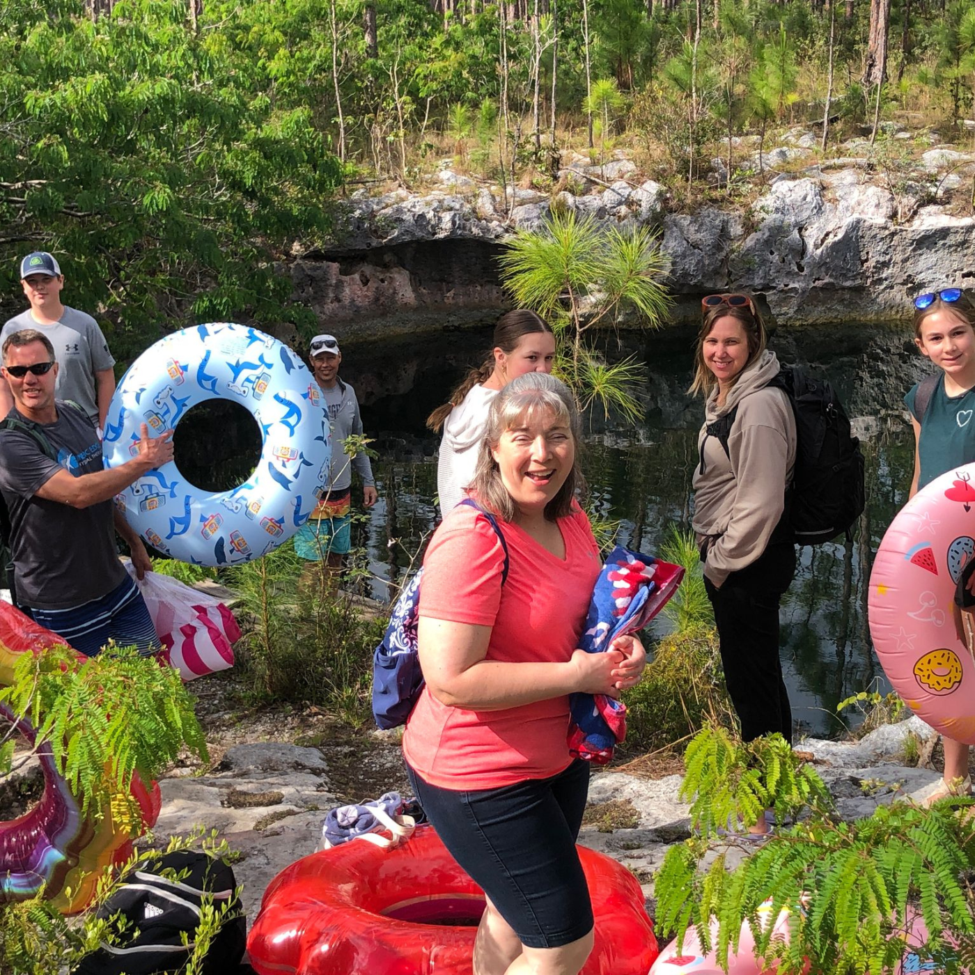 Today we had the opportunity to explore more of Abaco through our culture day. After another delicious breakfast and our devotions, we ventured out of camp to a unique geological feature called the Blue Hole. As we pulled off the main road, we came upon a two lane path back through the Abaco pine forest. After about two miles of barely getting our vans through the narrow path on a bumpy road, similar to the one to camp, we arrived at the Blue Hole.