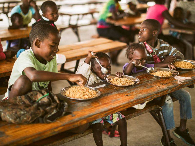 Pictured above: Children sharing a meal at a Love-in-Action center in Haiti
