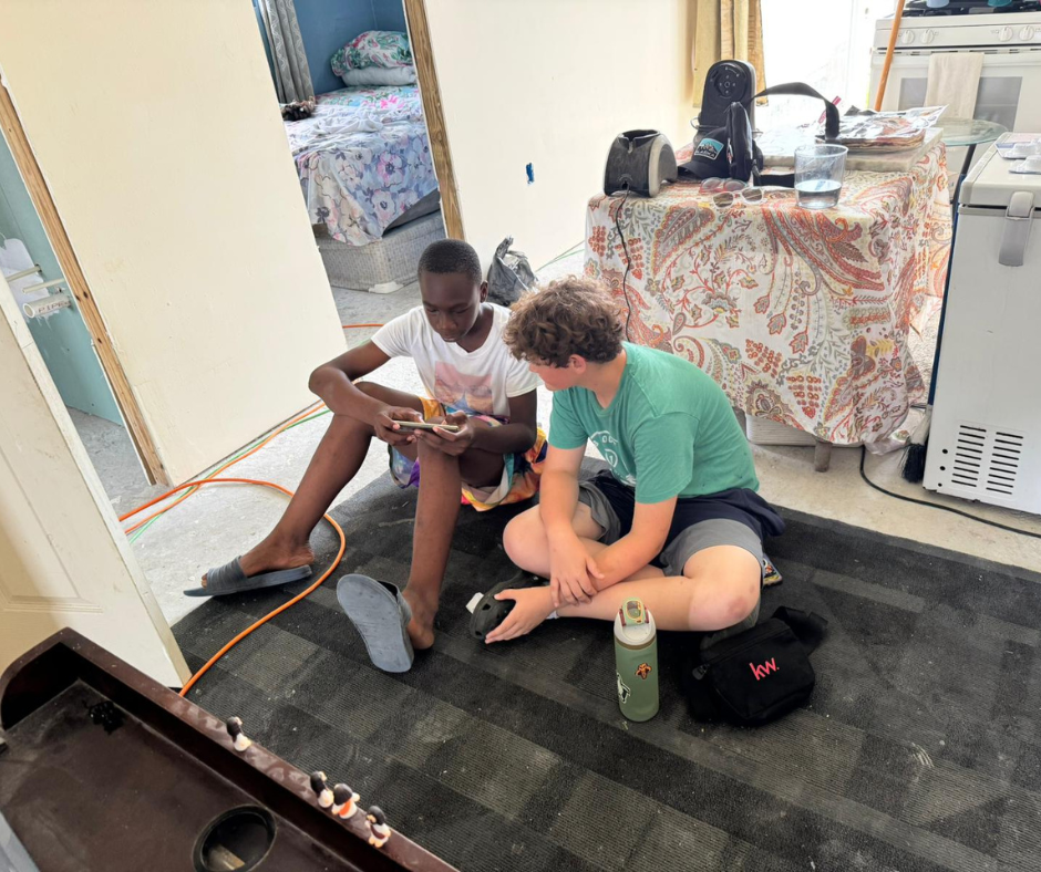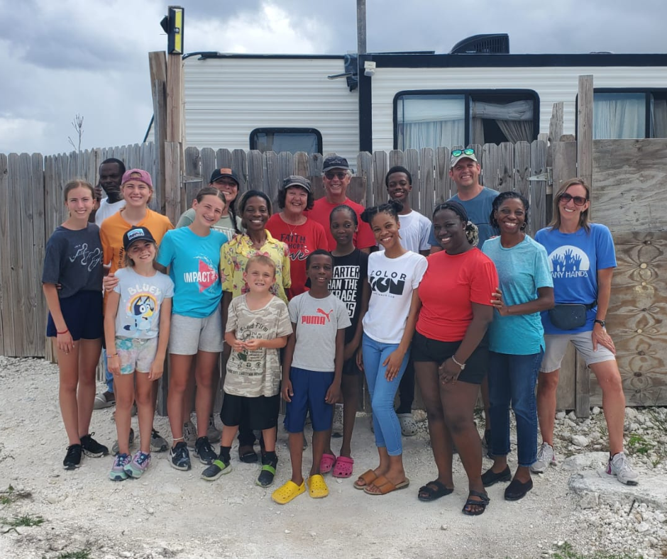 Tyler– It’s great to get our kids’ perspectives on today and on this week. To be able to make friends from another country at their age is a blessing and seeing them learning from the kids and culture here has been incredible. For me, today was an incredible day of seeing how our connections on the island continue to grow. Spending time on a home build, putting the finishing touches on a project at Central Abaco Primary School (CAPS), helping a counselor from the school – who also plays an integral part of the Bahama Youth Network (BYN), and then meeting 4 new families through food distribution was a reminder of the wide spread reach of the Many Hands mission here in Abaco. As we continue to focus on being Love in Action, God will continue to move through the work we are doing, and allow us to touch more lives for Him.