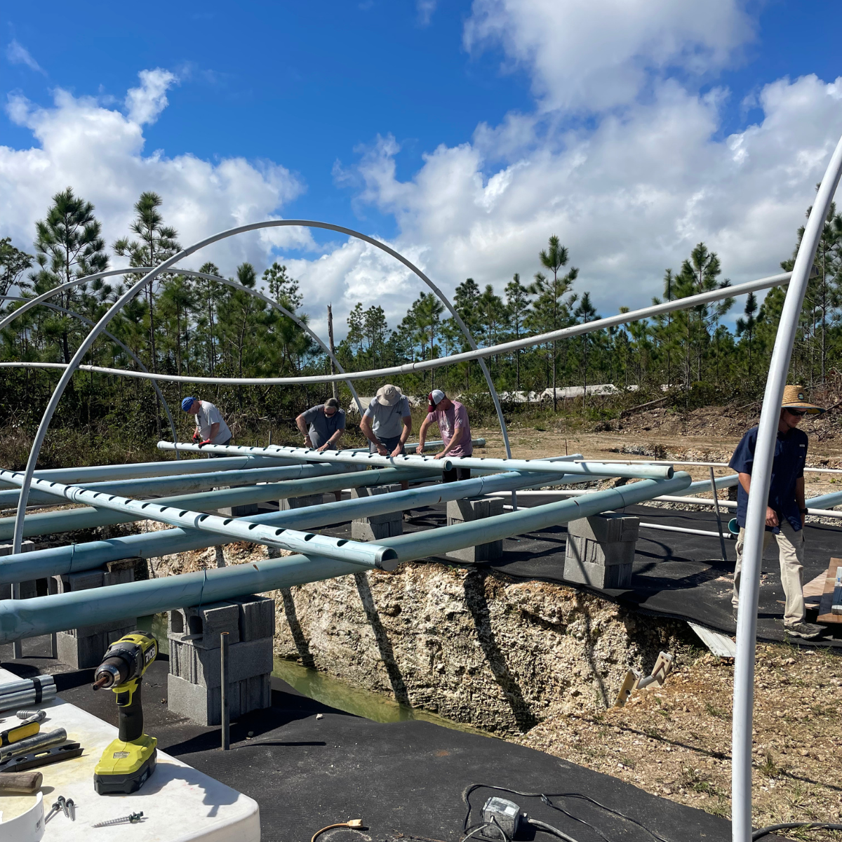 A short van ride to Driftwood Farms provided us a glimpse of the lingering impact of Hurricane Dorian with swaths of vegetation still struggling to recover. The owners of Driftwood Farms, Tracy and Glen Kelly, provided us the history and vision of the “off-the-grid” complex that seeks sustainable food provision. Walking the property throughout the day revealed the intimacy that they strive to maintain between the land they live on with the produce that they raise. We were blessed with the opportunity to aid in construction enhancements of a hog pen enclosure and an aquaponics system that they are pursuing as well as harvesting various vegetables that will be sold at a local farmers market.