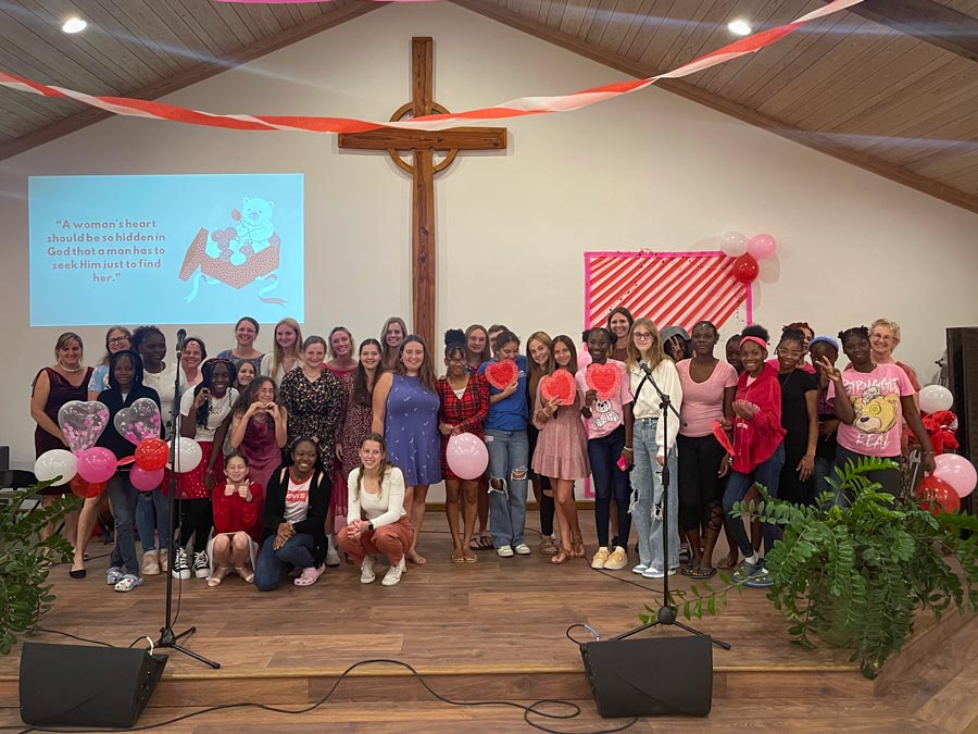 This evening, the females in the group helped host a “Galentine’s Day” event at the local church, Kirk of the Pines. Roughly 35 girls ages 11-18 gathered to enjoy crafts, cupcake decorating, nail painting/makeup, jewelry making, and a photo booth. A meal was provided, and the girls were able to take home all kinds of yummy leftovers! The Galentine’s evening ended with a devotional message about God’s unchanging true love for each one of us and His constant pursuit of our hearts.