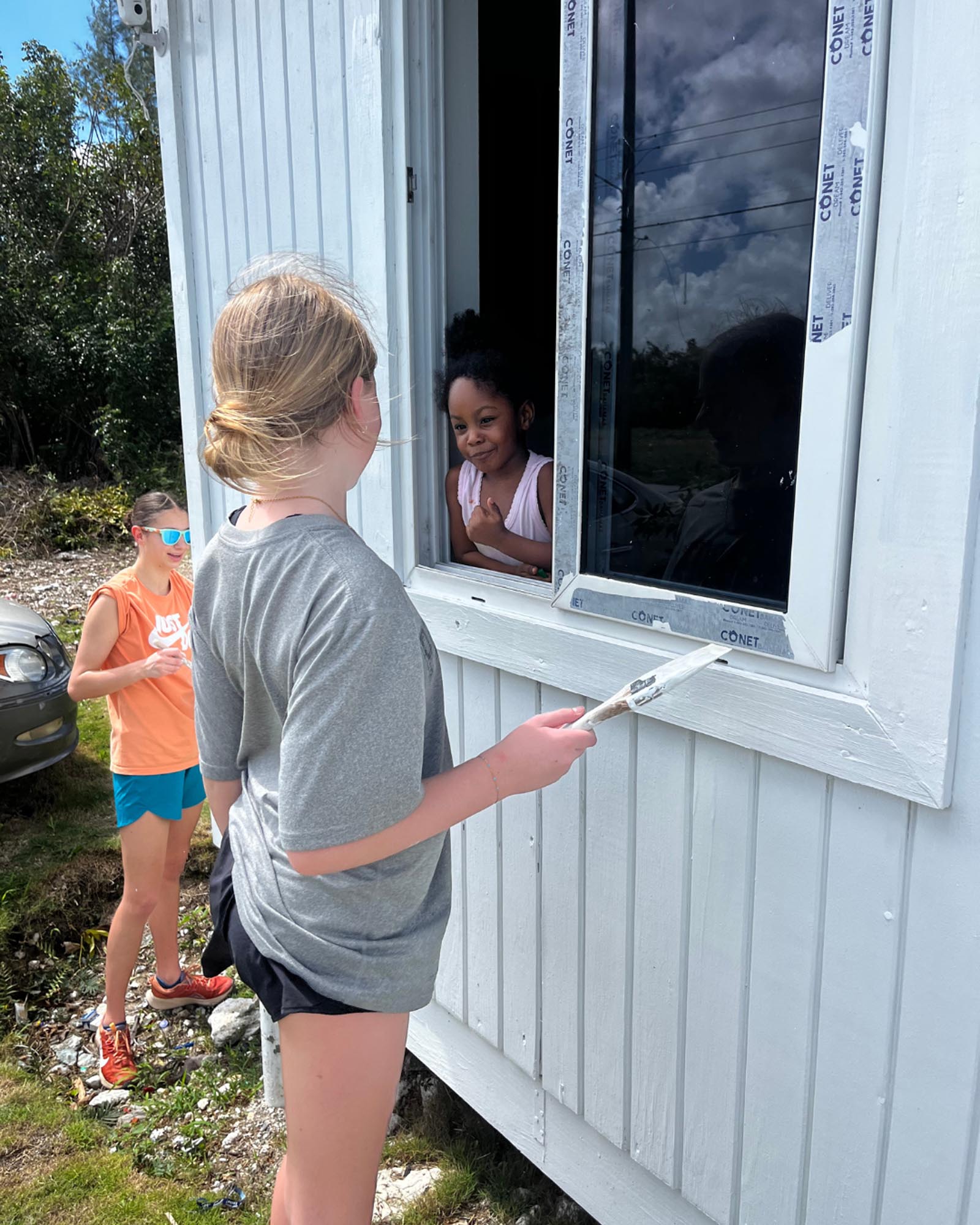 My 12 y/o daughter had the special opportunity (along with the other young gals in our group) to bond with a 3 y/o beautiful girl who was peeking out the window of the house we were painting. Leah, our leader, said it’s really not that common to see children while working. Yet, there she was… and the blessings were mutual. My daughter was telling me afterwards some of the things she talked about with her. The sweet little girl told my daughter, “I wana go with you…” My daughter gave her a last hug, and she told her to “say what I say”. She said, “I am brave. I am loved. I am kind. I am beautiful,” and that precious little girl repeated each one back to her.