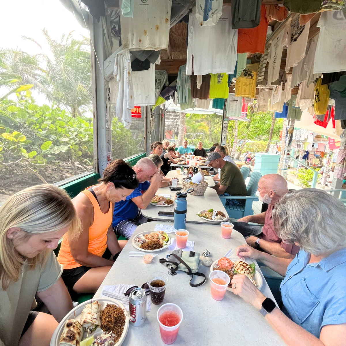 We started our adventure at a small Farmer’s Market, Maxwell’s Grocery, and Salty Island Gift Shop which had multiple handmade crafts. Another long bumpy drive brought us to Pete’s Pub for an incredible lunch and shell gathering at the beach.