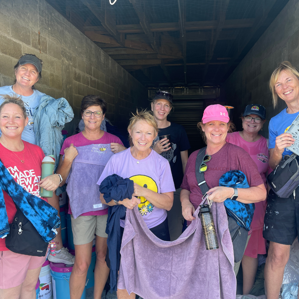 “Group 1” consisted of a mighty force of ladies set out to tango with t-shirts!!! Many Hands has been blessed with the beginnings of a fabulous distribution center to store and sort donations to better serve the community. With pallets of goods and piles of home decor items came the endless gaylords of t-shirts– yes, thousands of pounds of t-shirts that needed to be sorted and organized to be serviceable for future endeavors.