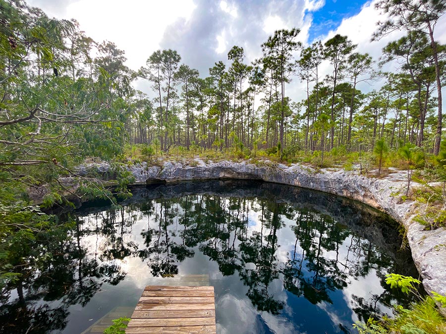 From there we ventured to the Sawmill Sink Blue Hole which is a natural trap cave in the middle of an Abaco Pine forest. It is a fresh water source with unknown depth.Scuba drivers have not been able to reach its bottom. Some of our more adventurous teammates jumped from the edge while others floated or waded in, but ultimately all of us were in awe of this natural wonder.