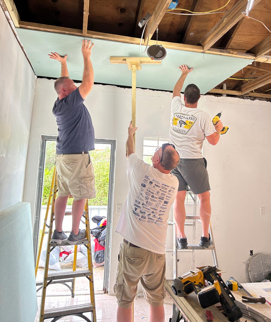 Then, “hi-ho, hi-ho”, it was off to work we go. Most of the group headed into Marsh Harbour (adding the “u” should tip you off that The Bahamas were part of Britain at one time), and returned to the community center. The focus of the work was finishing dry-walling as well as some painting. Great progress was made, and some passer-by pedestrians would comment, “Thanks – looks great!”. As part of errands for supplies, a few shopping stories also happened. It is great to see the shops and meet the store owners in Abaco. Two stayed back in camp to do some woodworking in revamping some bed frames in one of the dormitories. Bob Villa-type quality work is how it was described (primarily by the two who actually did the work).