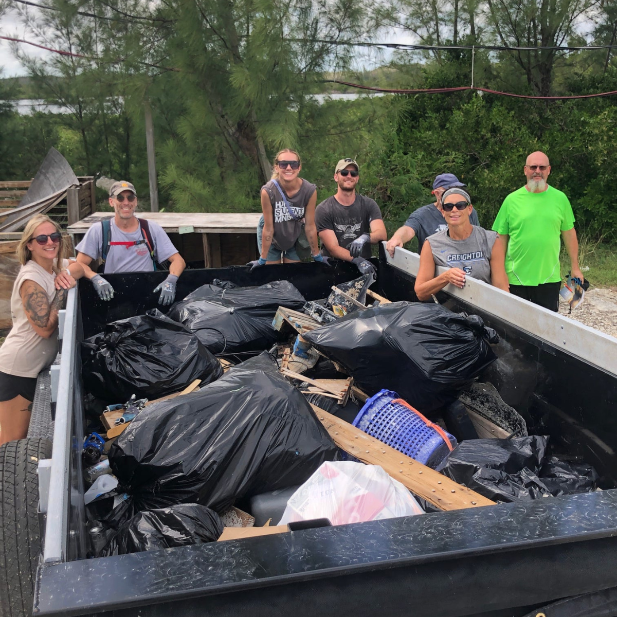 At noon, we packed up and came back to Camp Abaco for lunch before taking some time to clean up around camp. Vans were vacuumed. Tree branches trimmed to keep them away from power lines. Dozens of garbage bags were filled with trash that had been left along the road to camp near the beach.