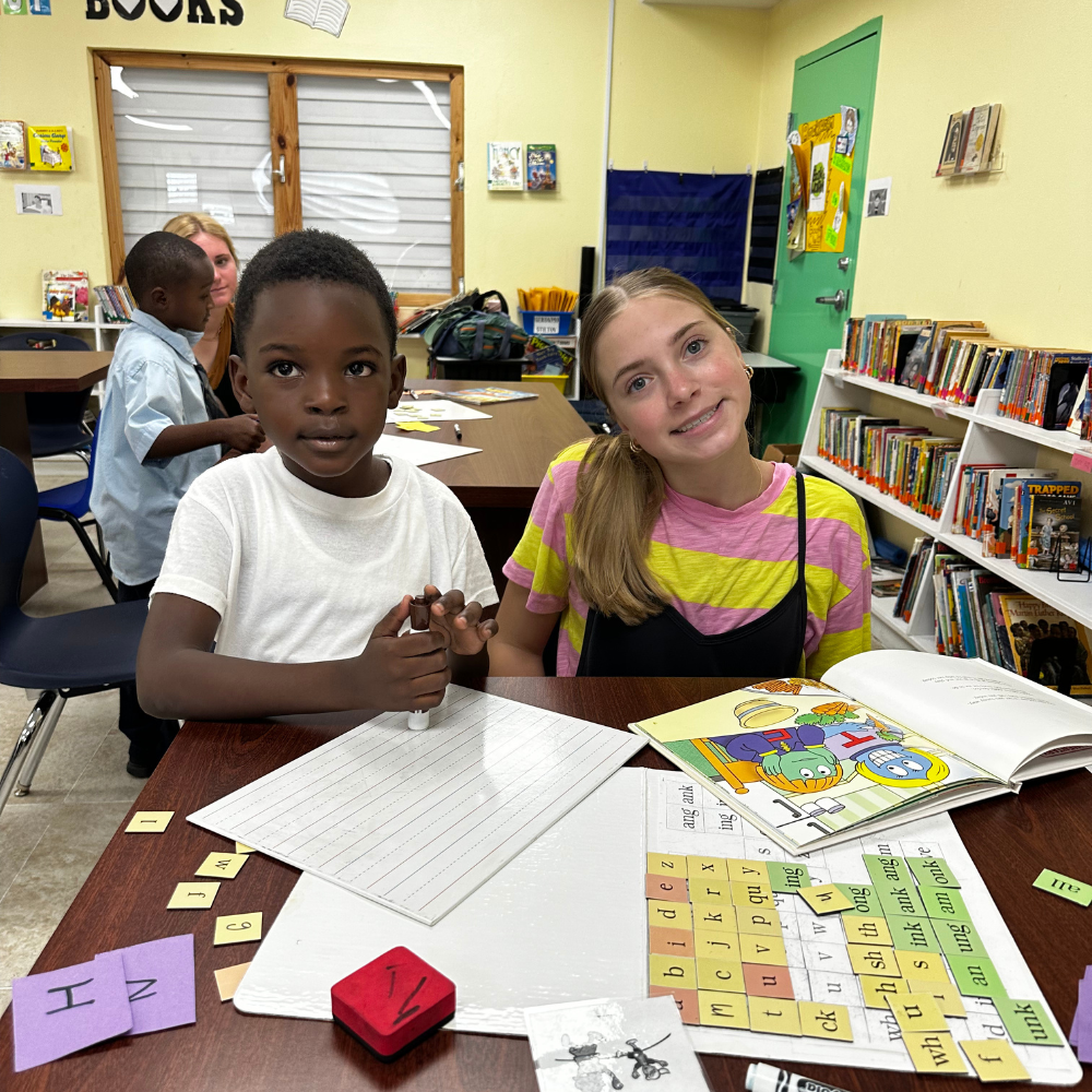 Today, I went to Central Abaco Primary School. They had a parent assembly where the parents sang a bunch of great and fun songs. I worked one-on-one with a child from the first grade and taught him how to write his name and a couple of specific letters: S, H, N, F, L, G, and W. We had a lot of amazing breakthrough moments with him. I worked with Berson, who had a hard time writing his name and remembering what letters make up his name. By the end of my time with him, I taught him a song to remember his name to the tune of the “Barney” theme song: B-E-R-S-O-N. That’s how he writes his name! The kids definitely love to hug you and braid your hair at break! It was super fun to interact with all the kids there.