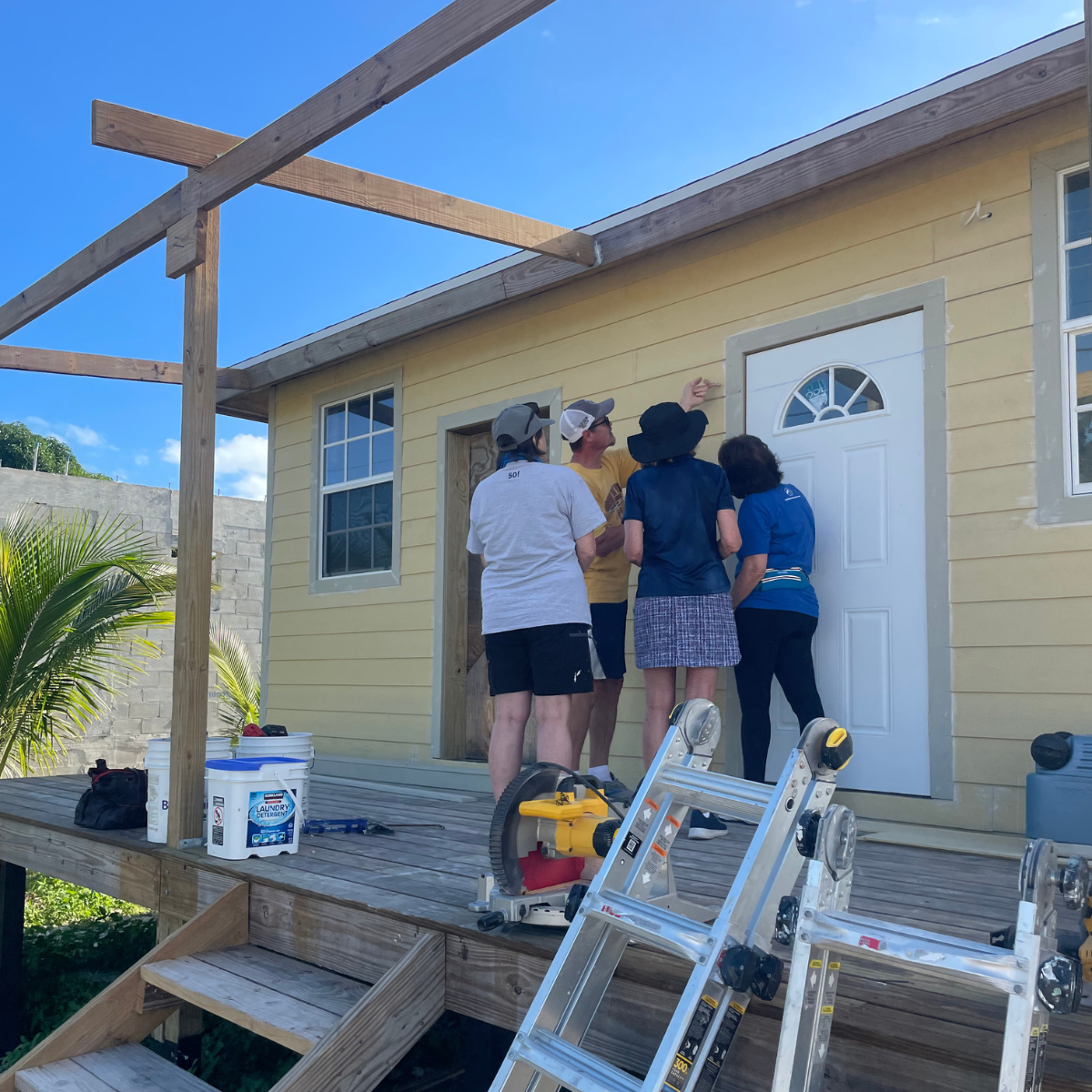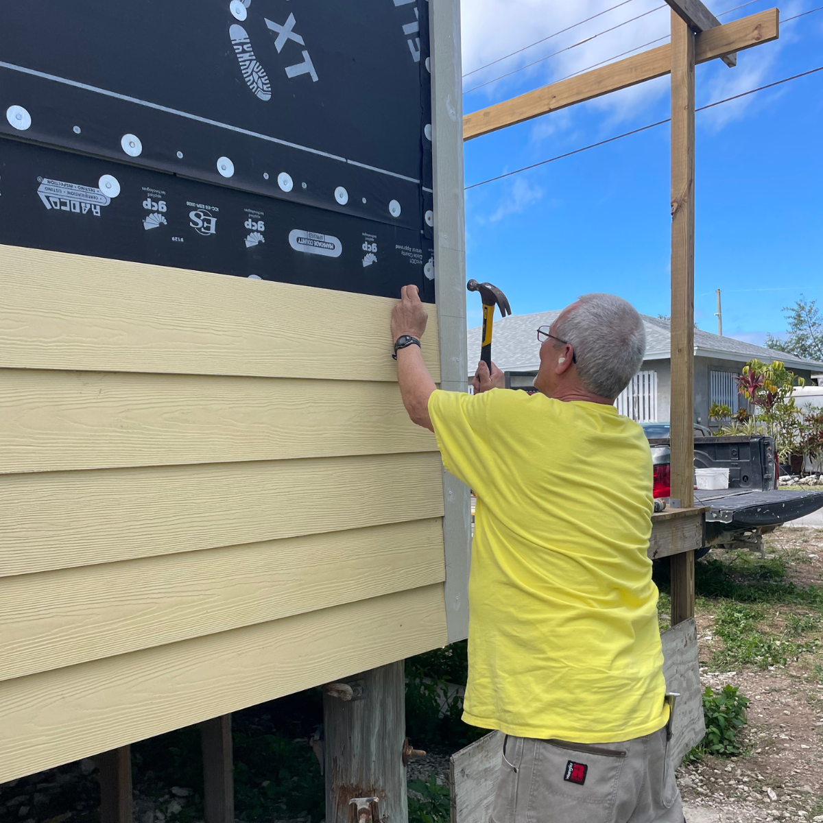 The second day of our adventure was to work on Zhivago’s house that Many Hands is helping with. This team of skilled volunteers used their time and talents to make incredible progress on the house! We installed cement board siding, caulked seams, and diligently sanded drywall mud, creating a smooth and beautiful finish. It was a truly inspiring day of hard work and dedication!